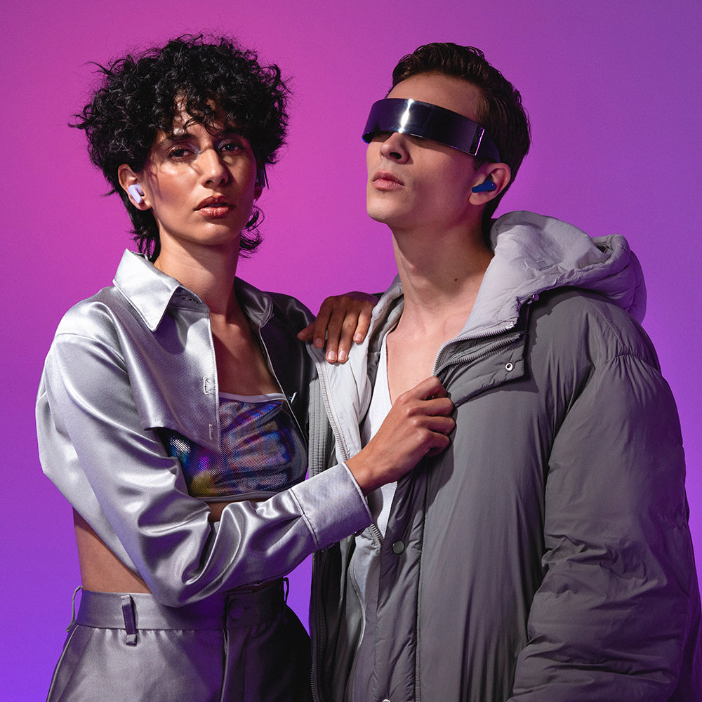 Audífonos Neo ANC true wireless con cancelación activa de ruido, batería de 3 horas continuas y 4 cargas adicionales con la base.. Micrófono para responder llamadas, tecnología táctil, es posible cambiar de canción. Sonido de alta fidelidad.