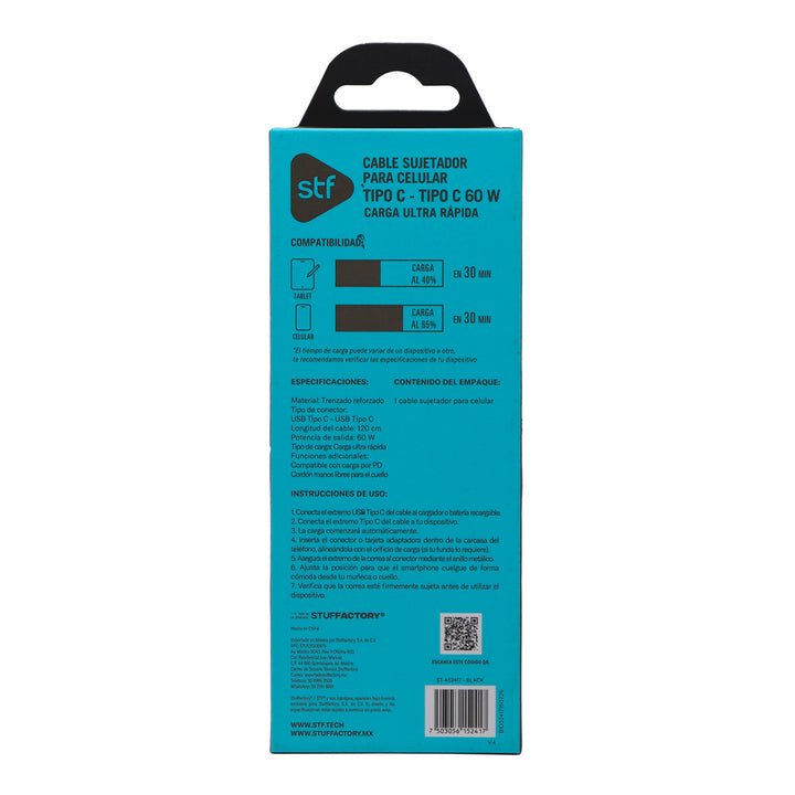 Carga más rápido y mantén tu celular siempre a la vista con el Cable Sujetador Tipo C 60W. Potencia y practicidad en un solo accesorio.