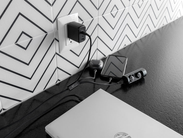 Cuenta con 2 puertos Tipo C y 1 USB, perfectos para alimentar laptops, tablets o smartphones de forma simultánea.