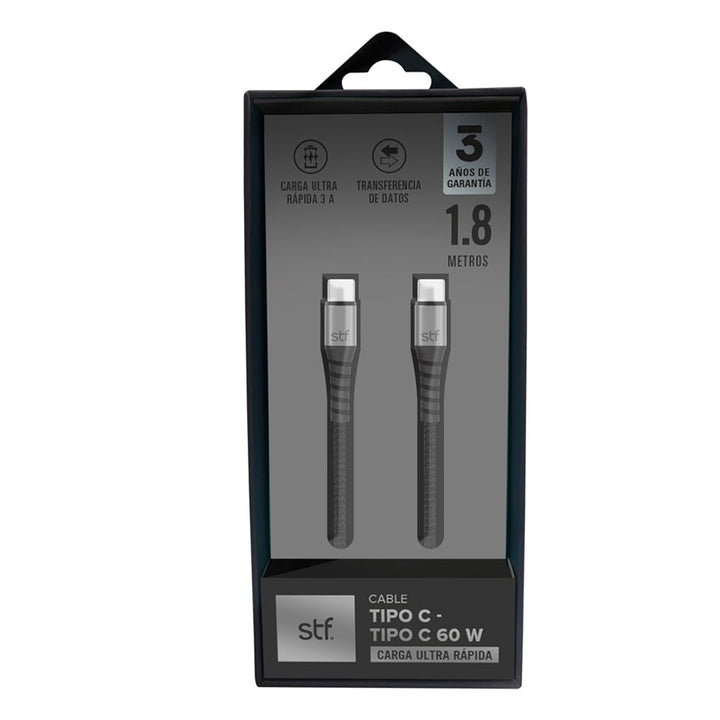 Su diseño trenzado reforzado garantiza durabilidad, mientras su longitud de 1.8 metros brinda libertad de movimiento al cargar o transferir datos.
