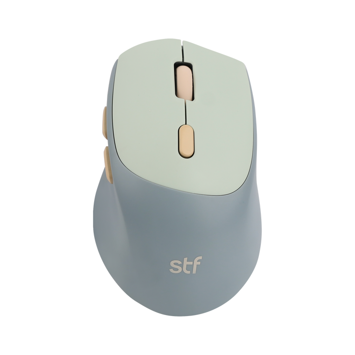 El VIVA Mouse inalámbrico de STF combina versatilidad, precisión y comodidad en un solo accesorio. Gracias a su función dual, puedes conectarlo vía Bluetooth 5.0 o con su receptor USB 2.4 GHz, asegurando una conexión estable y rápida con un alcance de hasta 10 metros.